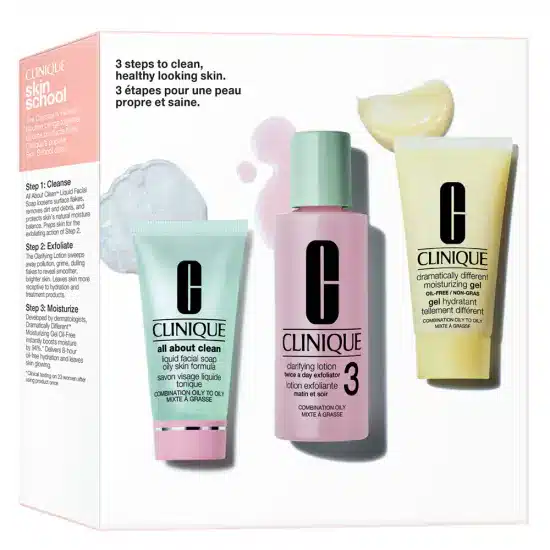این کیت، محصولات مورد علاقه کلاس محبوب مدرسه پوست Clinique را گرد هم میآورد.