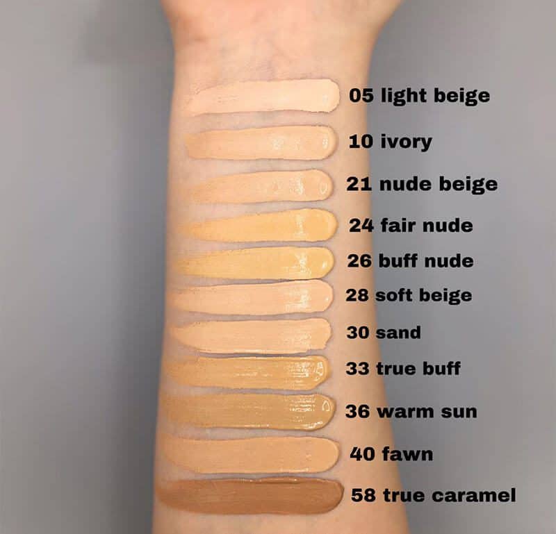 03 True lvory, 05 light beige, 06 fresh beige, 07 classic nude, 10 lvory, 20 cameo beige, 21 nude beige, 30 sand